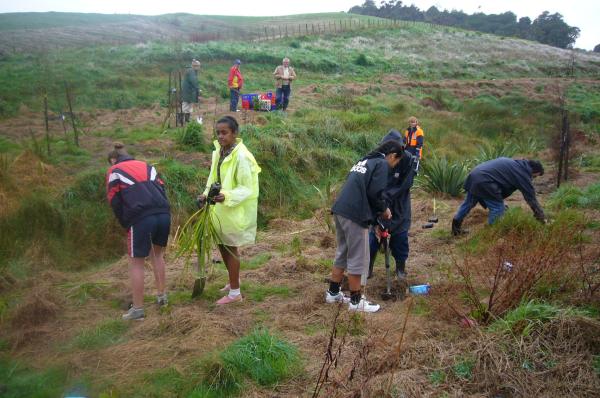 Late afternoon last Sunday, 22nd August, we were relaxing at home when we got a call from the Trees for Survival coordinator. We’d had our two scheduled TFS plantings earlier in the month, but TFS had a cancellation and as a result, Waikowhai Intermediate School in Mt. Roskill, Auckland had no place to plant their trees. She asked us if we would be interested in hosting the school and we immediately said yes.