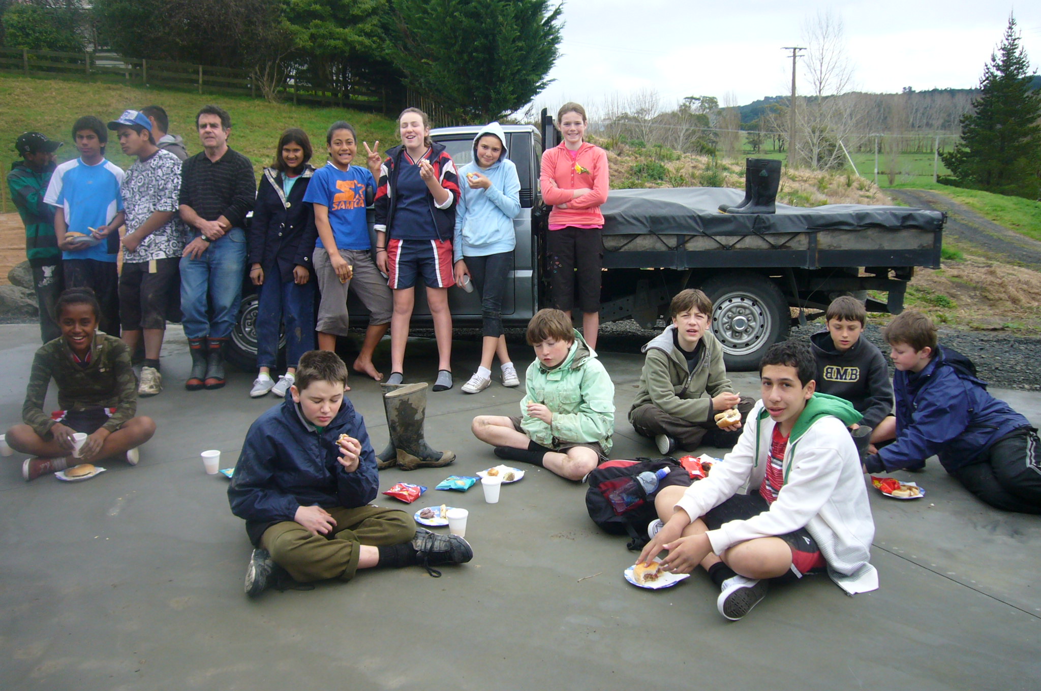 In addition to Brett and fourteen students, we had four volunteers from the Mt. Roskill Rotary Club – Alan, Ken, Luc & Maurice and a representative from Winstone Aggregates – Andrea Cave.