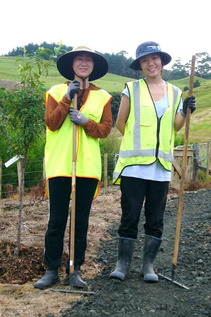 Our team consisted of John Busson, the NZ team leader, Tamara & Kolja from Germany, David from Switzerland and Ju Hee, Joo Yeon, Ji Yong and Changok from Korea.  Their visit to CUE Haven was funded by a grant from the Fonterra Catchment Care programme.