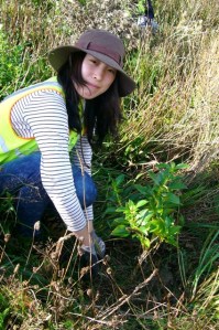 The next task was to help out with rehabilitation of the wetlands.  There are five ponds at CUE Haven and since they are no longer being used as a water source for cattle, they have become stagnant and are filling up with algae and other invasive plants.  In order to rejuvenate the ponds, the volunteers planted Carex and native rushes by the edges to improve the water quality in the ponds.  The ponds are located in the wetlands and this area is quite inaccessible during our normal planting season in winter as the area is under water.  Summer, when the water levels are down, is the perfect time to be able to work around the banks of the ponds. Even so, it was a very messy task, and there is always the risk of a nasty drenching, but the volunteers completed the job with no complaints and nothing worse than muddy boots.