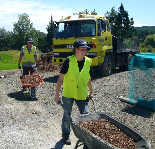 CUE Haven looks even more beautiful now that the volunteers have helped us with so many projects and we very much appreciate all of their efforts, the invaluable leadership and advice from team leader, John, the support of the Conservation Volunteers organisation, and of course the generous assistance of the Fonterra Catchment Care programme. We would also like to acknowledge and thank Treescape for most generously donating a truck load of mulch which was used during the week.