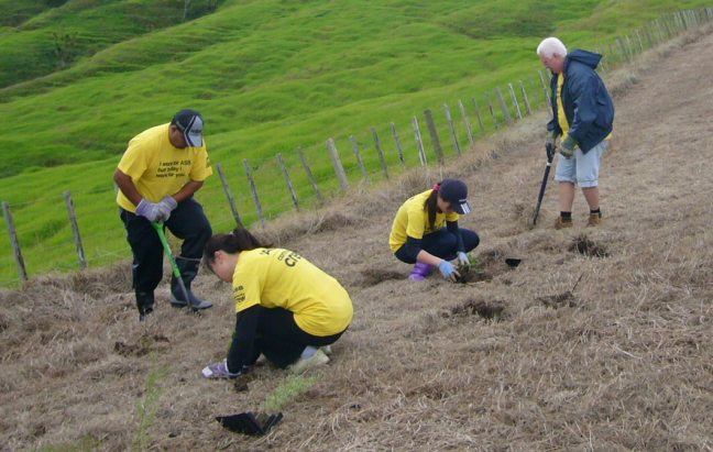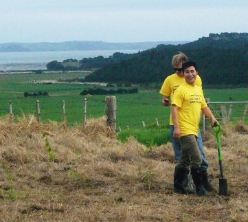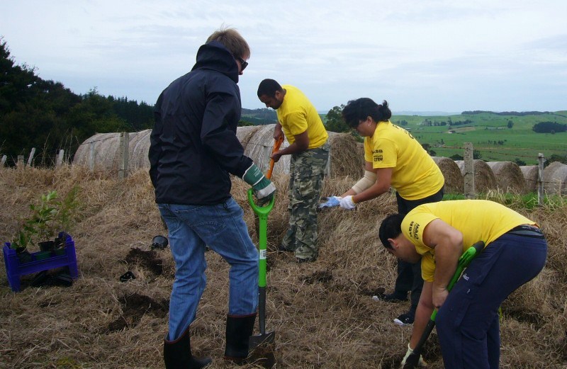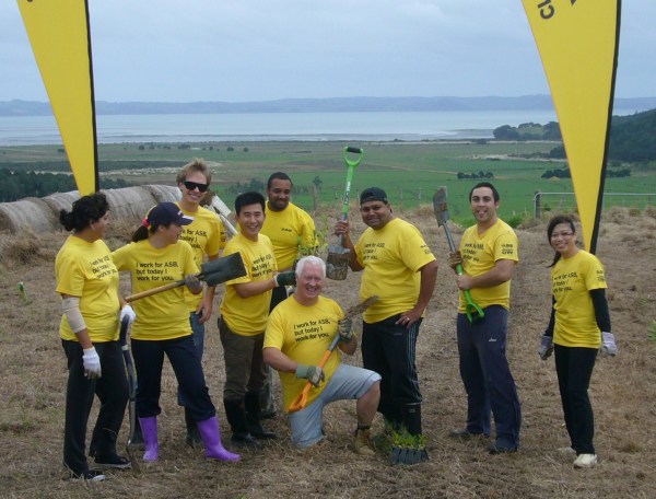 ASB is a major New Zealand bank with a strong commitment to community support and service. On May 25, CUE Haven was fortunate to have a team of volunteers from ASB’s St. Lukes, Westgate and New Lynn branches on site for our first planting day of the 2011 season. Joining us from ASB were Alice, Anita, Cissy, DJ, Fredrick, Jethro, Richard, Vincent and Zane. Our friend Rene’ was also visiting us from the South Island and he was a great help getting things set up and also participating in the planting.