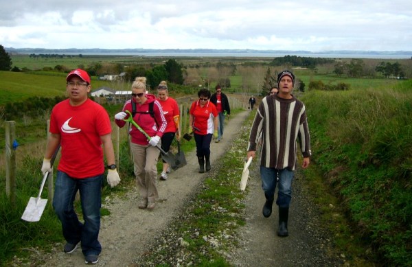 We couldn’t have asked for a better day for planting than this past Wednesday when ten volunteers from Contact Energy came out to CUE Haven to help with this year’s planting. Contact Energy is one of New Zealand’s largest public companies. They are a generator and retailer of electricity, natural gas and LPG.