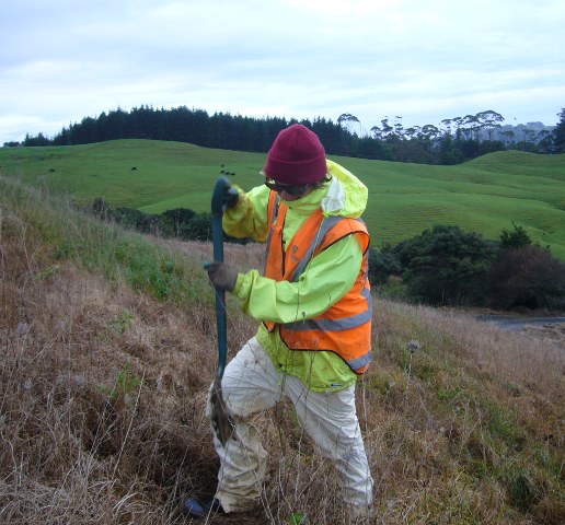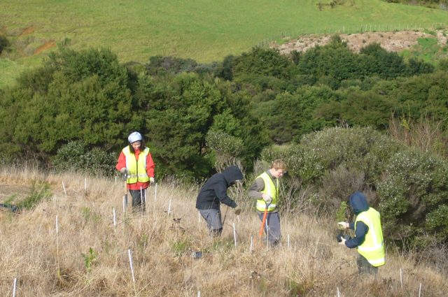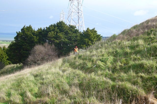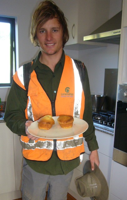 The week of June 27-July 1, a team from Conservation Volunteers NZ stayed over at CUE Haven and worked hard to plant almost 1,700 trees. This is a significant achievement considering that the team was short handed because a volcanic ash cloud from Chile has been disrupting flights in Australia and New Zealand. Not only that, they were assigned a rather challenging planting area and our off road vehicle, kindly lent by Scrub Growers Ltd, had given up the ghost so the team had to carry trays of plants a couple of hundred metres to the planting site.
