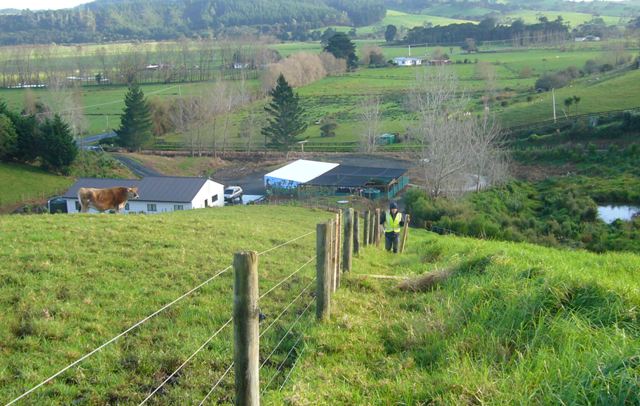 Youn and Alina took a break from planting to help Tom shore up a section of the boundary fence. The fence had no battens and to prevent the neighbour’s cows from sticking their heads (and inevitably their whole selves) through the fence we decided to install battens. It was a challenging job. First, we had to carry the wooden battens up the slope and then install them.