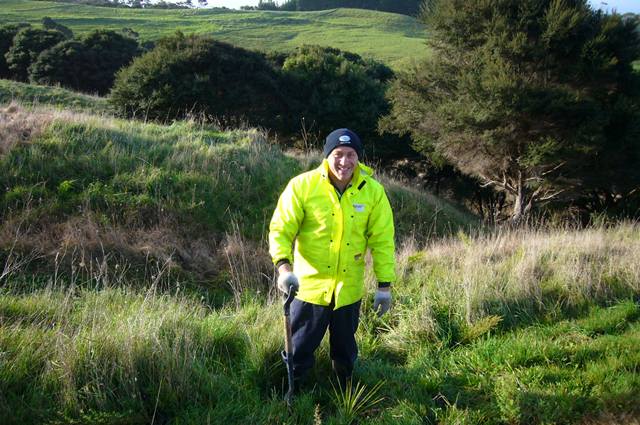 The Conservation Volunteers visit was generously funded by the Fonterra Catchment Care Programme and on Thursday, the team got some additional help when Pat, Kevin, Steve, Jamie, and Paul from Fonterra’s Maungaturoto, Northland operation came out help with some planting. Fonterra is the world’s largest exporter of dairy products and is one of New Zealand’s largest companies.