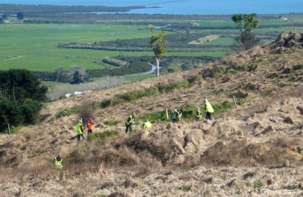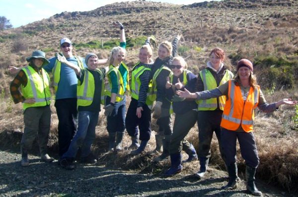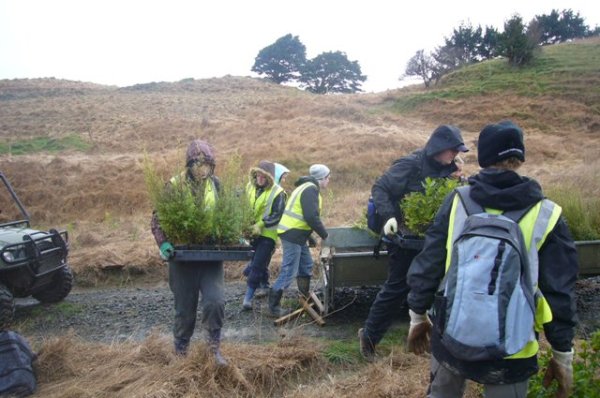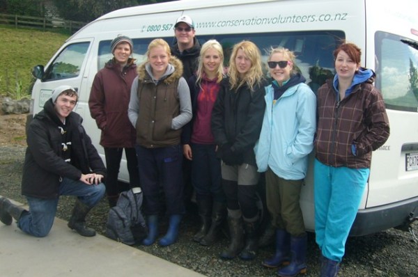 The team arrived on Monday afternoon and left on Thursday after lunch and in that time they planted almost 2,000 trees, cut gorse and repaired a 250 metre stretch of boundary fencing while also learning about New Zealand and a variety of conservation related topics. The team accomplished quite a bit considering that this week all of New Zealand was hit by the worst winter weather in 80 years. Auckland set a new temperature records (cold) and it snowed in downtown Auckland for the first time in 40 years. The team had to contend with cold temperatures, hail and gale force winds for the first two days of the week and even after the rain and wind stopped there was frost on the ground in the morning and a cool breeze.
