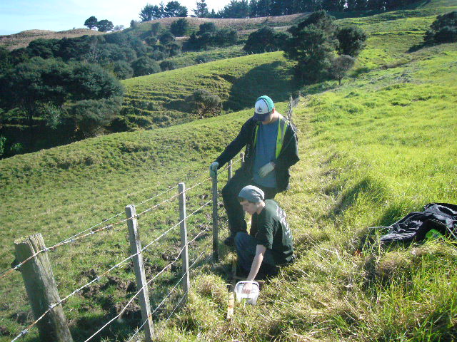 Chris and Conor joined Tom to shore up a stretch of boundary fence that needed maintenance. We hauled 20 fence battens plus hammers and staples up to the site and in a couple of hours made the fence substantially more cow proof.