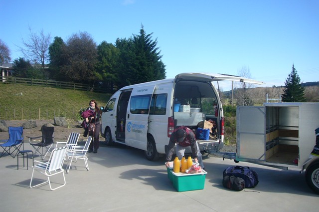 The team arrived on Monday morning and unpacked and got settled into the cottage. Even though it is mid-winter, the weather was so warm we had morning tea outside!