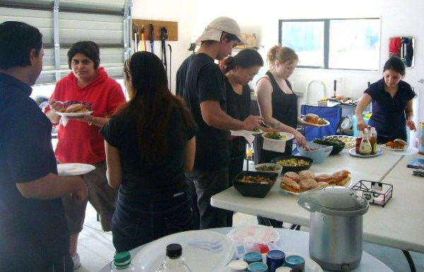 While we planted, Fiona, who was nursing a torn ligament in her knee, helped Mahrukh prepare lunch.