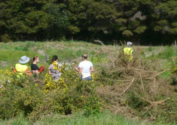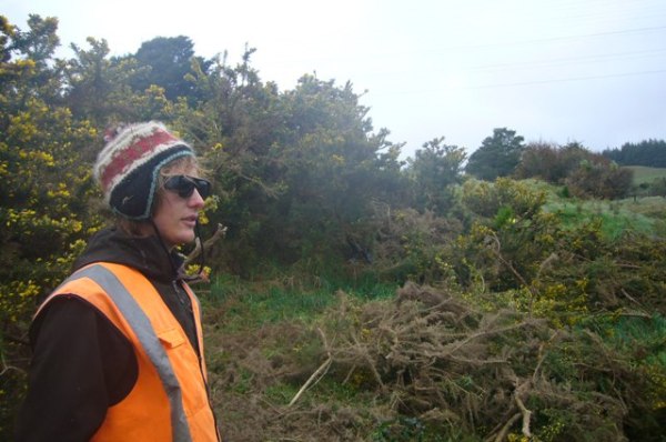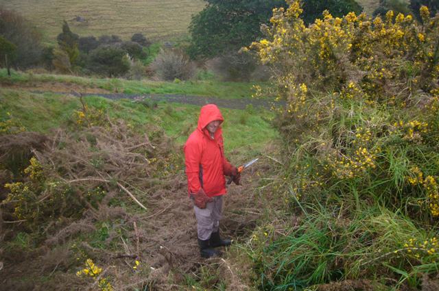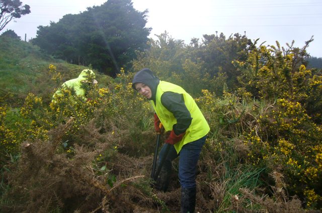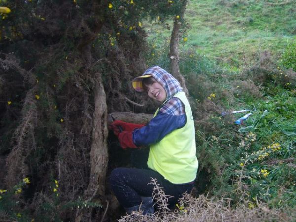 The biggest and most difficult job that the team tackled was chopping out several large areas of gorse bush. Gorse is a highly invasive shrub with needle sharp spines. You use heavy gloves when you handle gorse. It spreads at an alarming rate and is something you definitely don’t want competing with newly planted trees. Its yellow flowers make it look pretty from a distance but up close it is really nasty!
