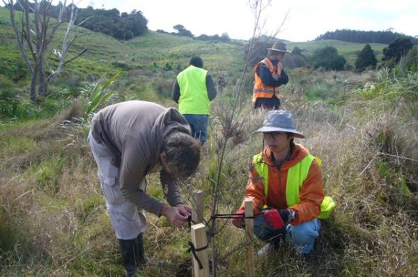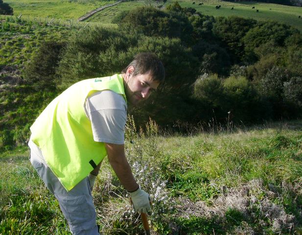 This summer, Conservation Volunteer teams will work to build a walking track through the gully bush so that visitors can enjoy the gully stream and waterfalls. Ian Smith, National Manager of Conservation Volunteers NZ came out to survey the track plan in order to assess the level of effort and the materials that will be required.