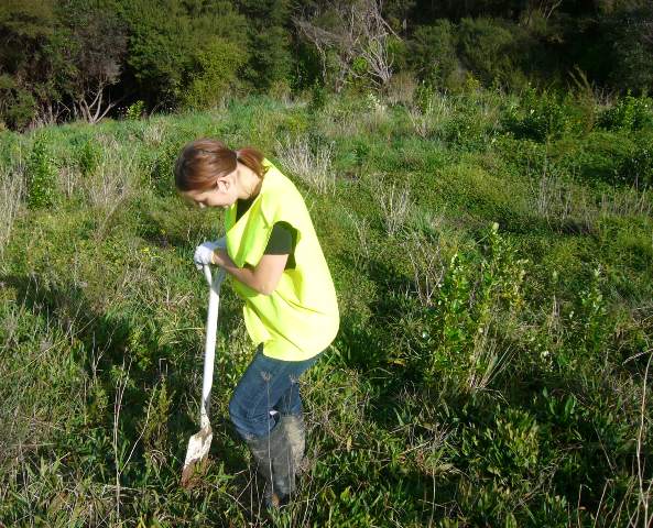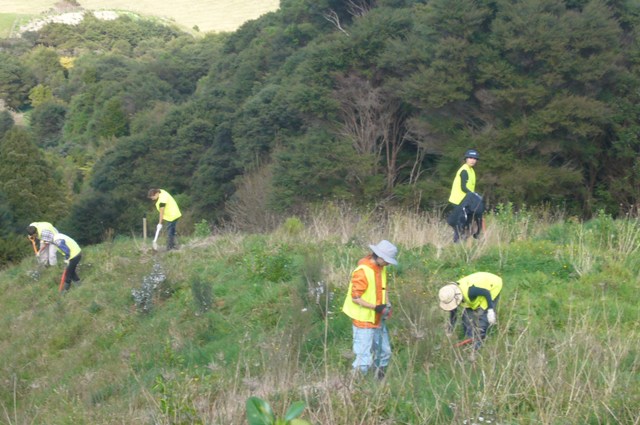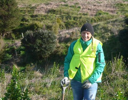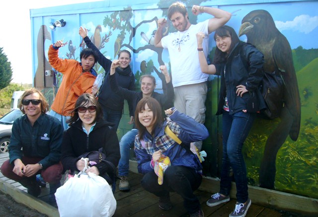 This week, a fantastic team of Conservation Volunteers finished off the planting season and accomplished some major maintenance jobs. The team was led by Pete Hannon of Conservation Volunteers NZ and was made up of Patricia from Germany, Philip from England, Jung Eun from Korea, Natsuko, Konno and Yoshimi from Japan, and Megan from the USA.