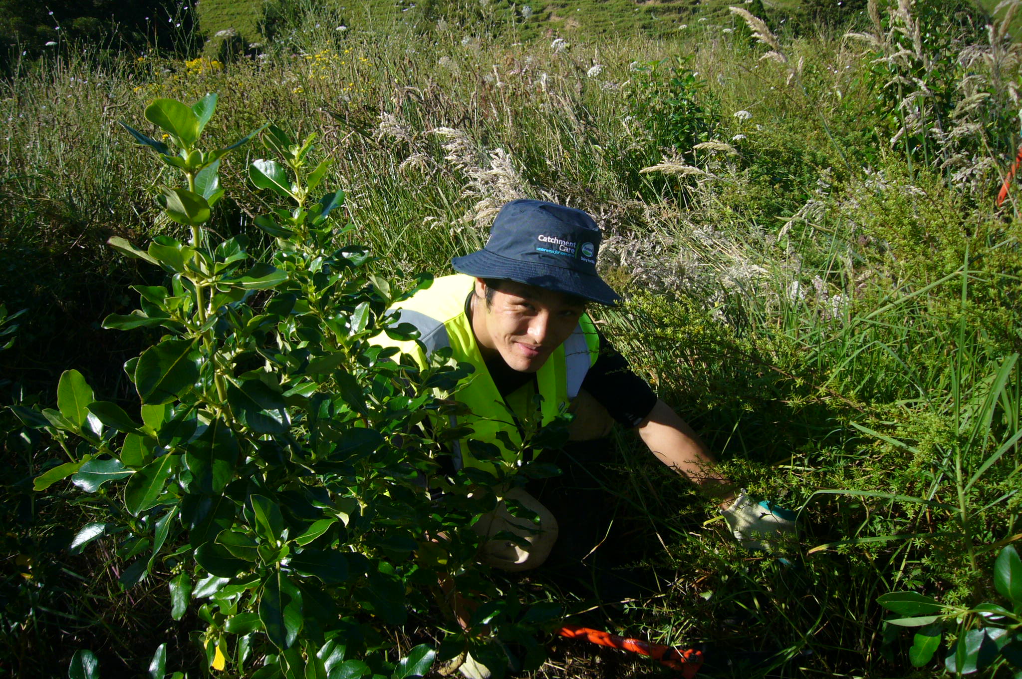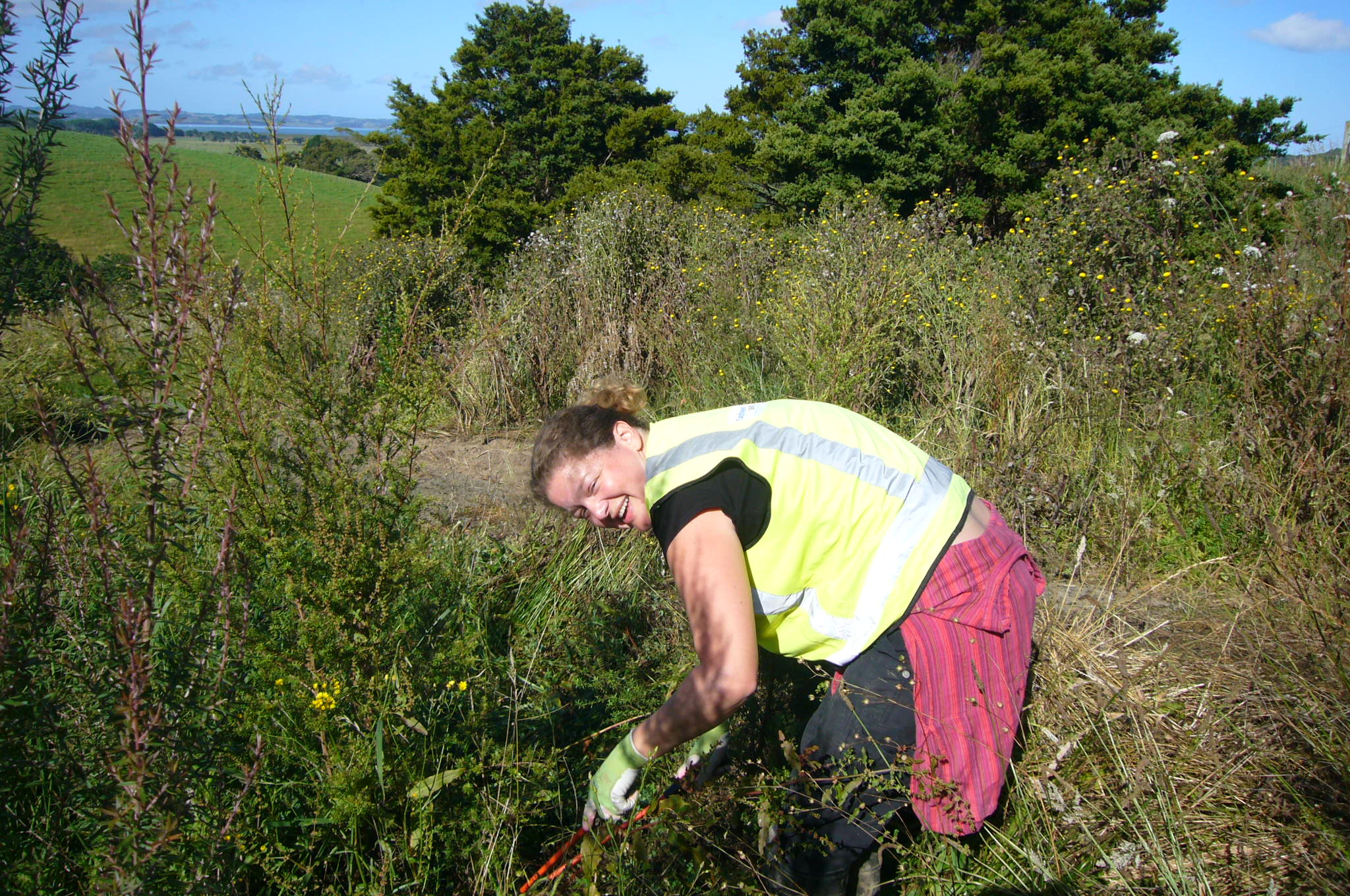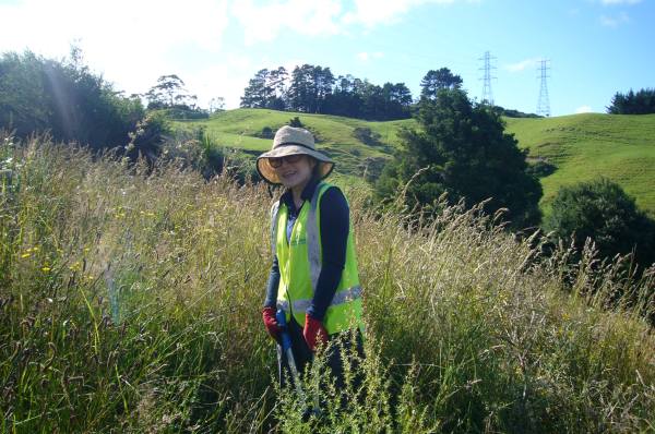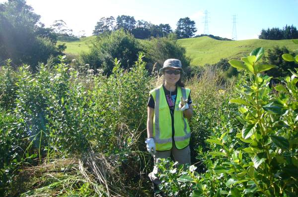 Part of the team went to work clearing and smoothing the existing track section while the rest of the group did some much needed weeding in the area around the entry of the track. The team was also joined for the day by Yoshimi, who had been part of a CVNZ team that came out in August and who has since become a good friend of CUE Haven.