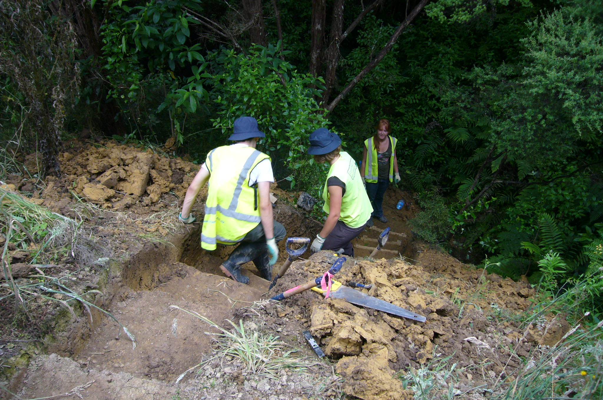 For the rest of the week the team worked on extending the track further into the bush. The track traverses a variety of terrain and the group ended up cutting thirty-seven steps in banks along the track route.