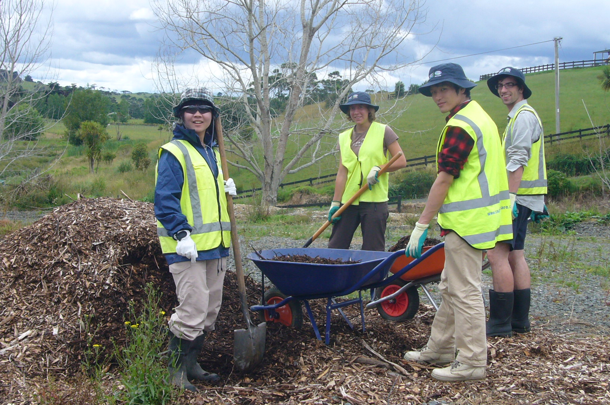 The team arrived on Monday morning and after a short introduction, they got started spreading mulch in some of the landscaping around the nursery and cottage. The mulch was generously provided by Treescape.