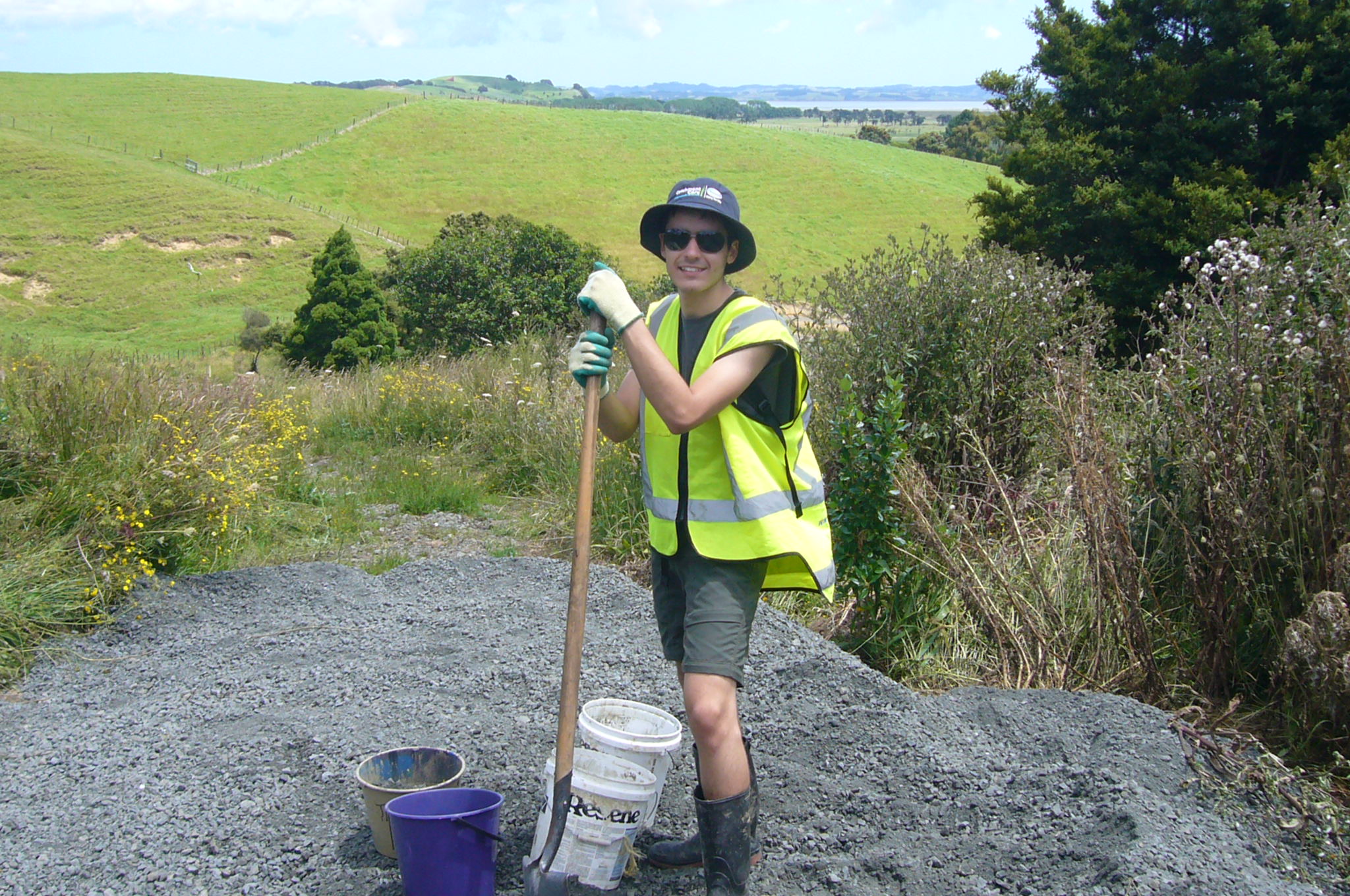 Winstone Aggregates has been supporting our efforts at CUE Haven by sponsoring some of the metal that is used on the tracks. On Wednesday morning, a load of gravel was delivered and Peter Hopkins of Helensville Diggers brought down several truckloads which were piled up at the start of the track.