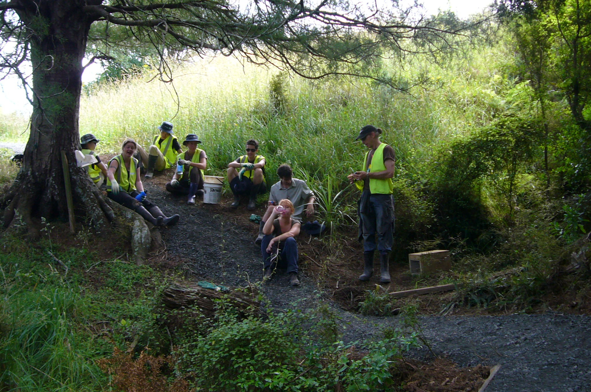 During the week of December 19, an enthusiastic team of Conservation Volunteers visited CUE Haven to continue building the walking track that had been started in October. The team was led by John Busson of CVNZ and included Pedro from Brazil, Nadia and Katharina from Switzerland, Yuya and Mikei from Japan and Max and Deborah from the UK.