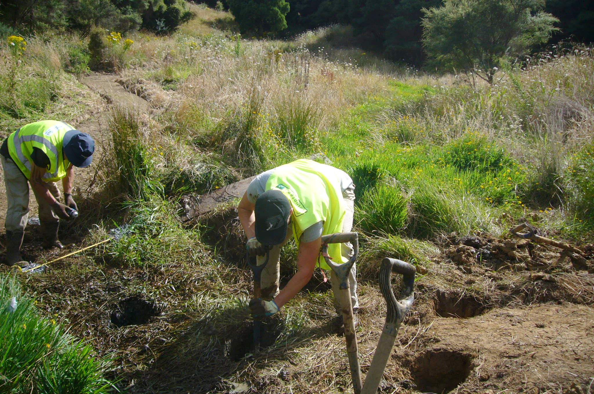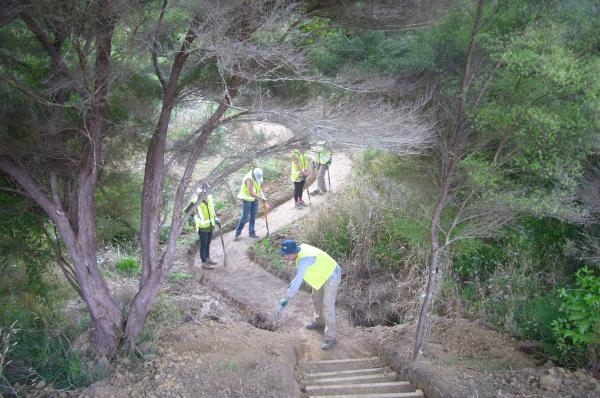 The walking track at CUE Haven came a lot closer to being finished thanks to the efforts of a small but hard working team of Conservation Volunteers. In addition to a group of five volunteers who spent the week with us, we also had a few local volunteers who came out for the day to help out.