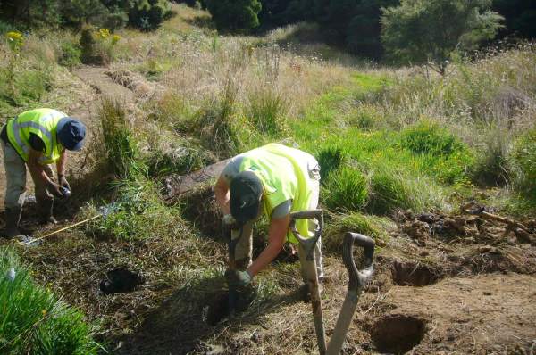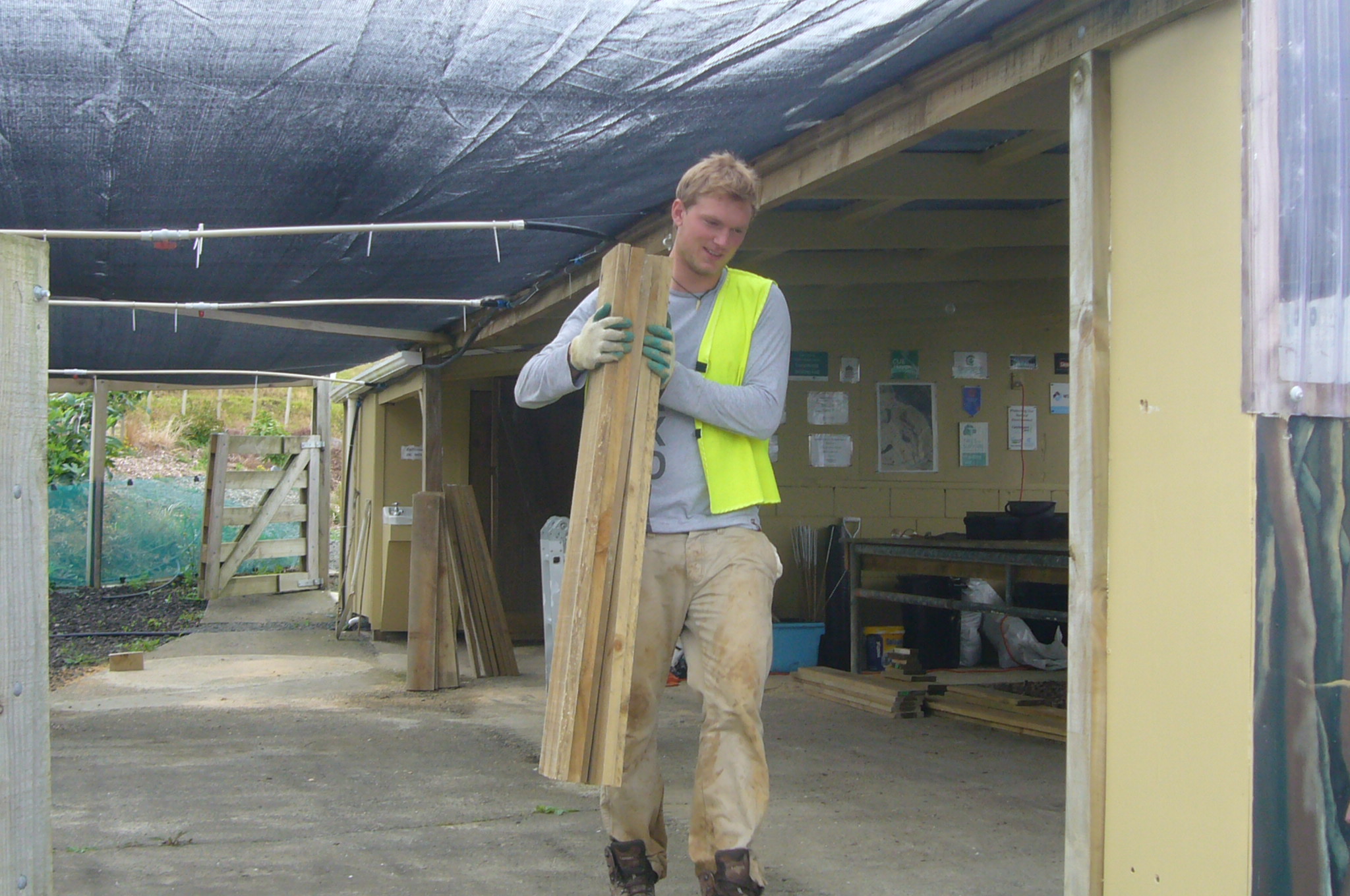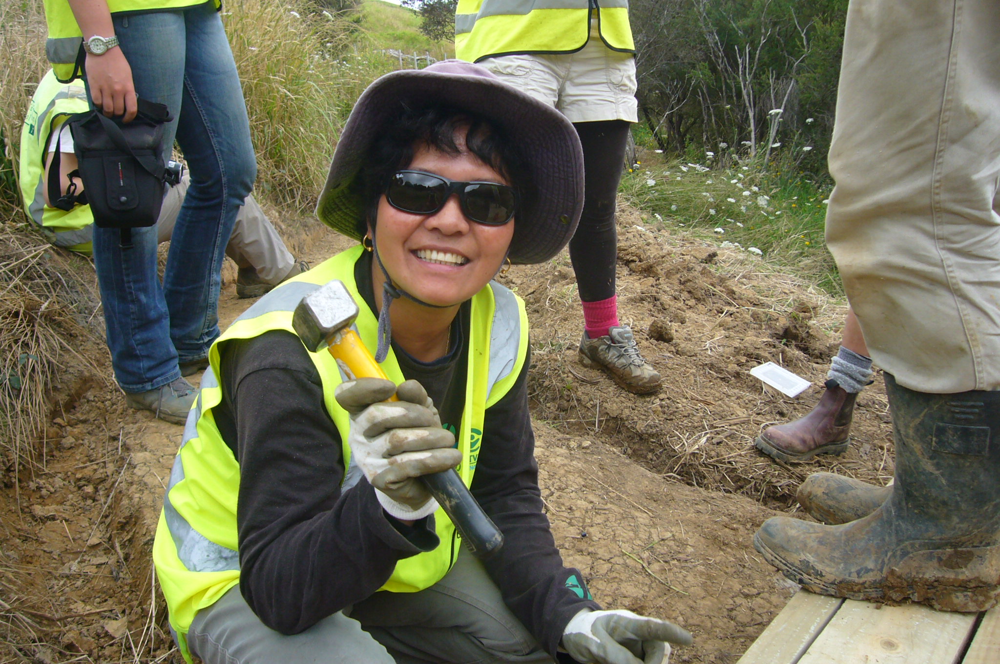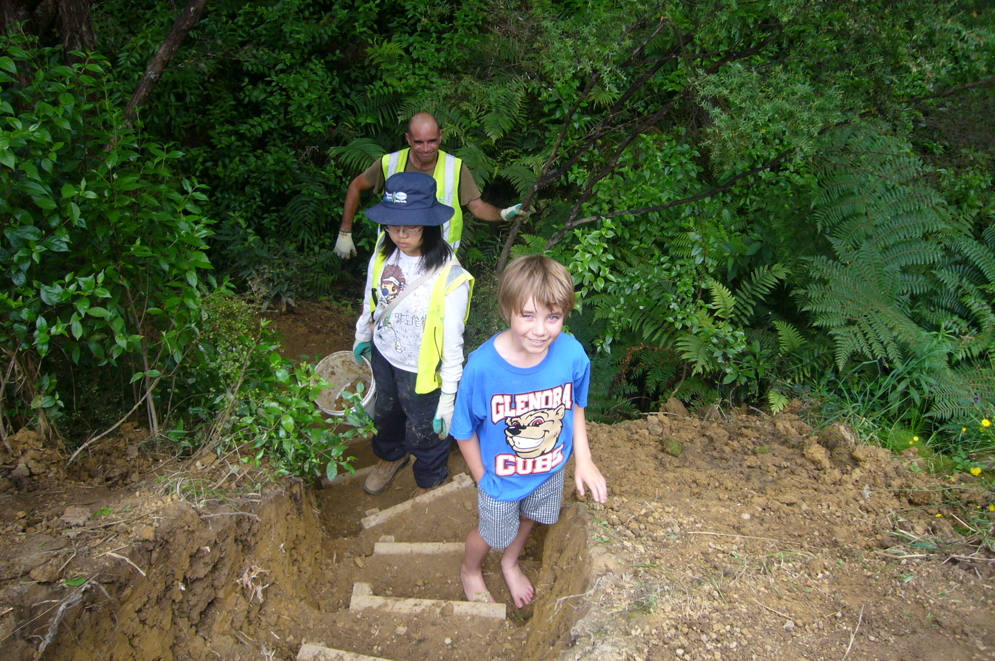 On Tuesday, we continued to box up steps. Aucklanders Maggie, Ed, Jean-Pierre and Jean-Luc also joined the team for the day and they worked on improving a section of low lying track by covering it with soil excavated from other parts of the track.