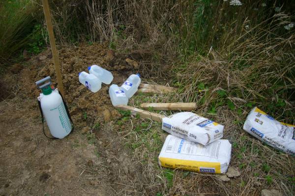 In order for the bridge to be secure, the posts had to be set in concrete. The team had to carry up 25 kg bags of cement as well as clean water.