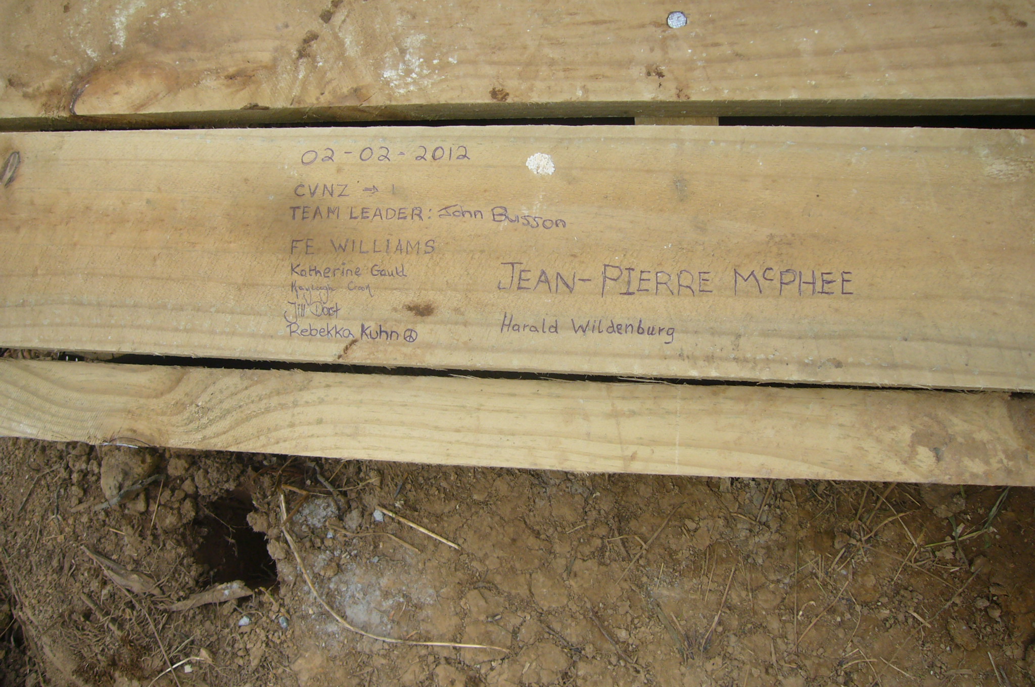 Before we nailed the last plank in place, each of the team members signed the board to commemorate their involvement in the construction.