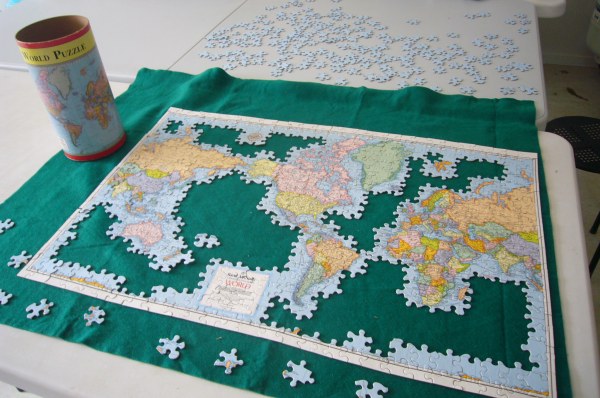 You would think that after a hard day’s work the team would have relaxed in the evening, but they had so much energy they tackled a world map jigsaw puzzle and almost completed it in one evening: