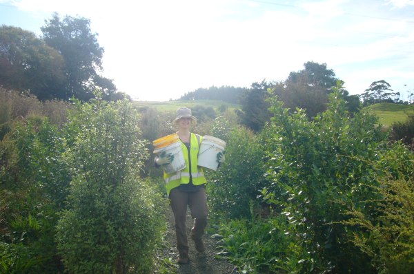 Also on Wednesday, we had a visit from Rachel Griffiths of the Auckland Council WaiCare programme. In Maori, wai means “water” and Rachel oversees a programme to help landowners assess water quality and to implement steps to improve the quality of streams and ponds. CUE Haven has several ponds and streams and Rachel came out to do an initial assessment. She also spent some time with the CVNZ team talking about water quality and conservation issues.