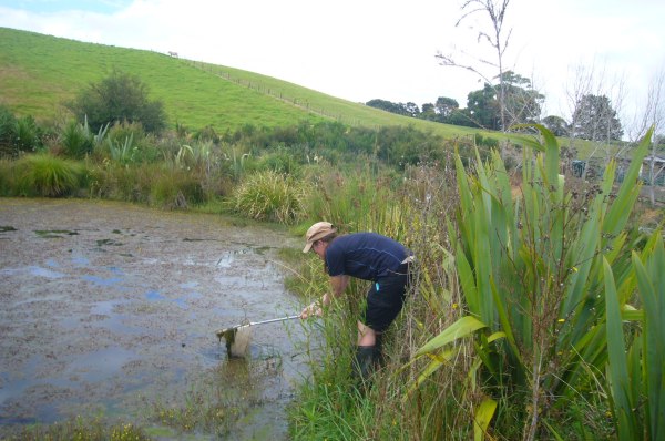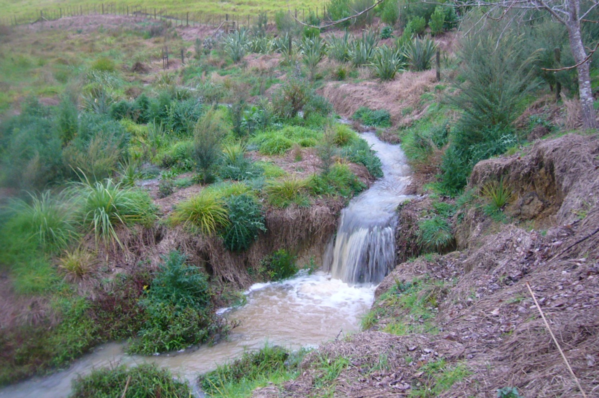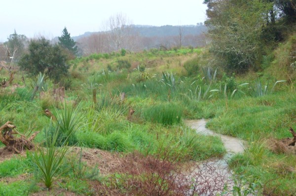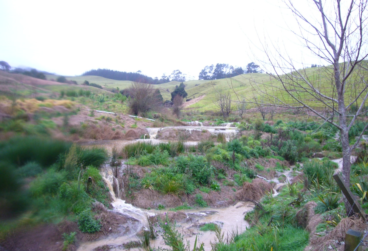 The CUE Haven property has a number of streams and ponds and wetland areas. The streams all feed into a tributary of the Wainui stream which joins the Araparera River just below our property, flowing then out into the Kaipara Harbour. We have always been concerned about water quality and the health of our ponds, streams and wetlands. In fact, our revegetation project got its start with early plantings to protect the water quality and the wetlands.