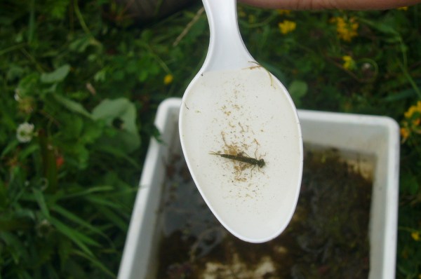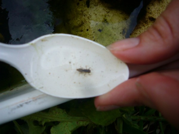The next step was to determine what sorts of macroinvertebrates were living in the pond. “Macroinvertebrates” is a fancy word for bugs, many of which are larvae of the flying insects that live around streams and ponds.