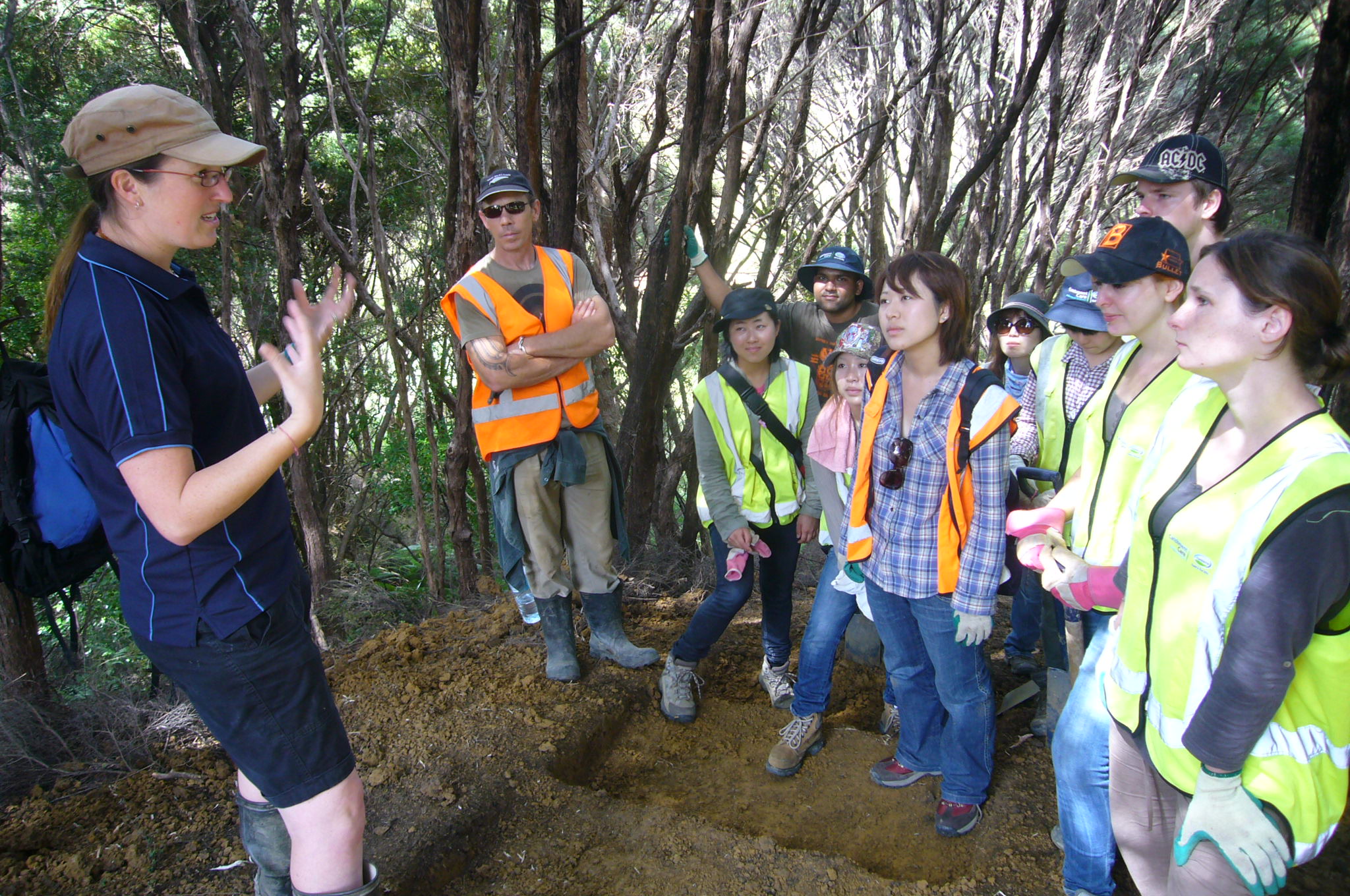 We started out by taking a quick tour of the property so that Rachel could get a feel for the terrain and the status of the revegetation project. Along the way, we met the team of Conservation Volunteers who were working on the walking track and Rachel took the opportunity to give these overseas visitors a little background on water quality and conservation issues.