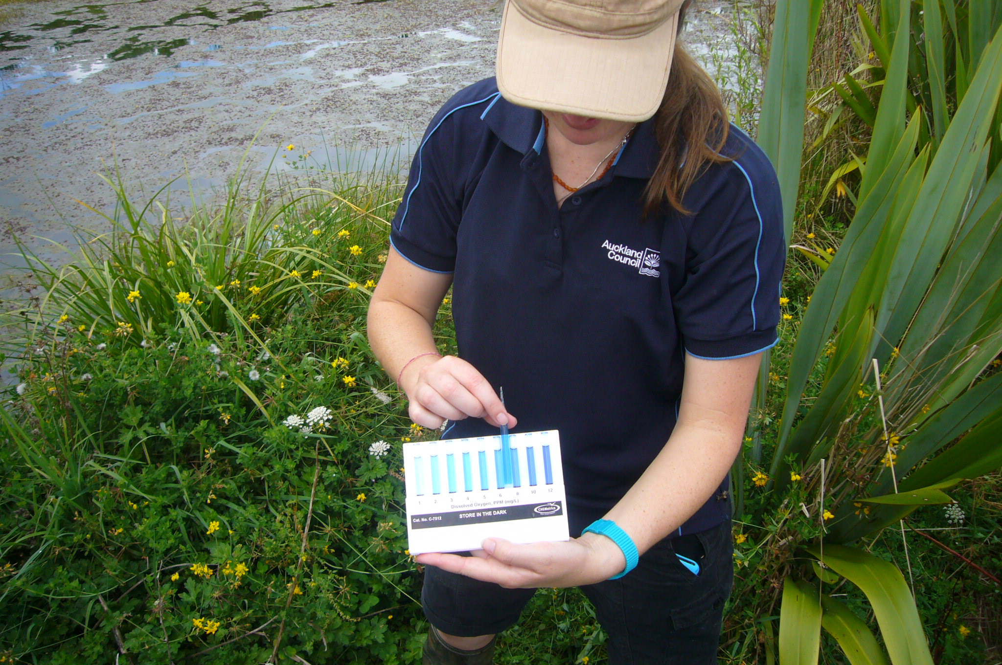 One of the benefits of the Wai Care programme is that they have a strong commitment to education and work with many local schools. In order to continuously monitor the water quality and aquatic life at CUE Haven, Rachel has kindly agreed to come out when we have school planting groups on site. She will talk to the students about water care issues and get them to help her with the water sampling and testing.