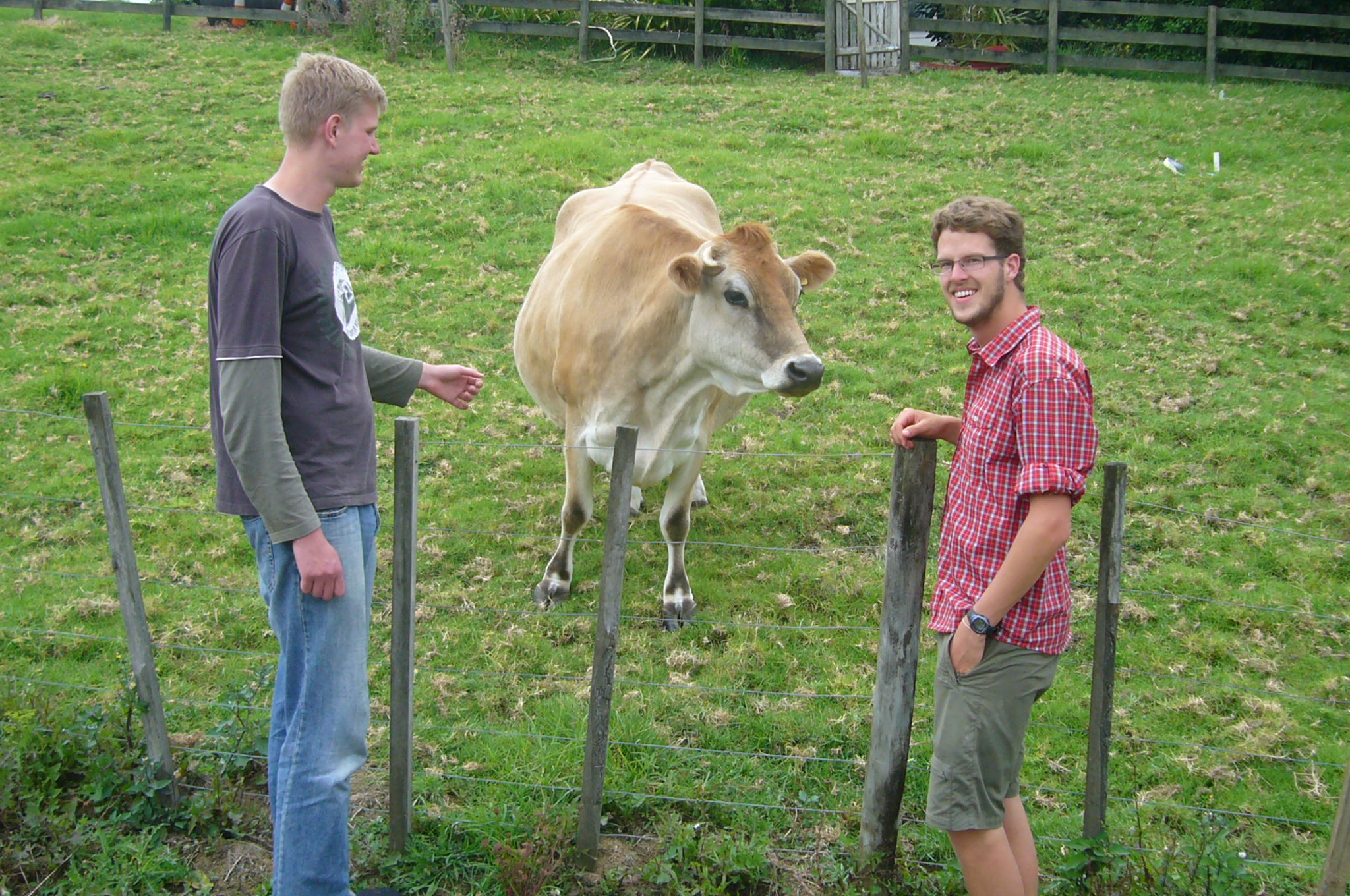 After a hard day’s work, Ralph and Gil took time to make friends with the neighbour’s cow:
