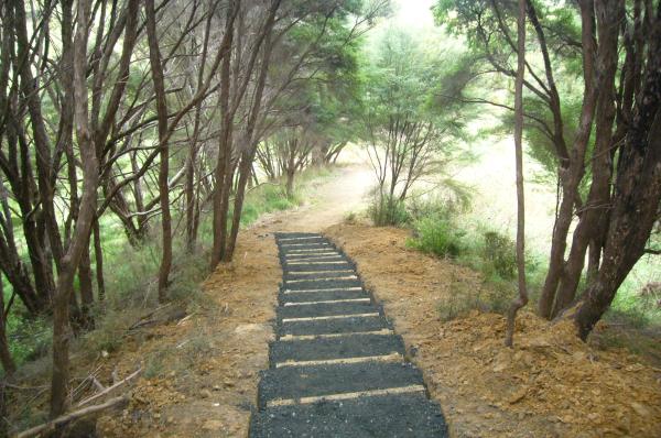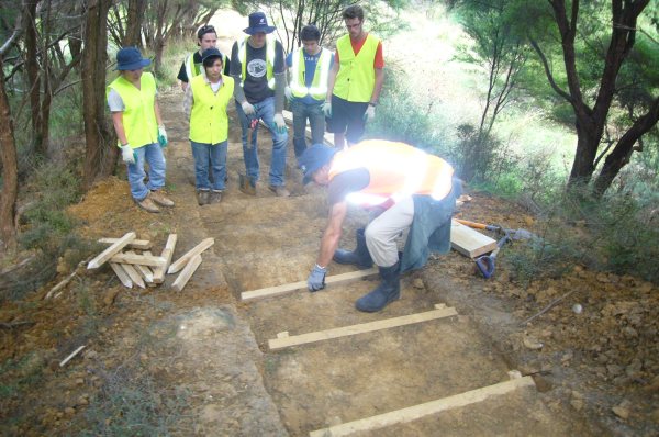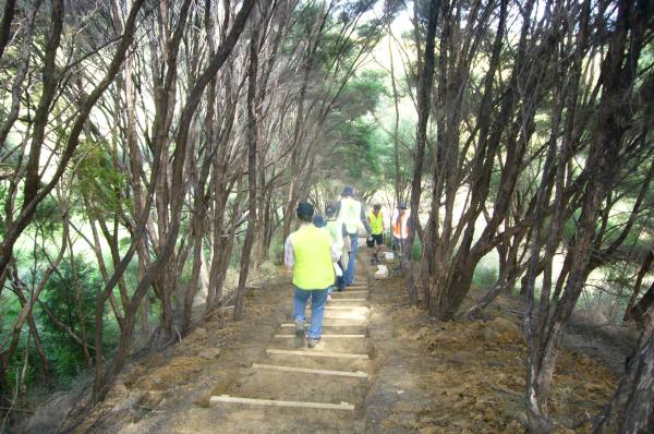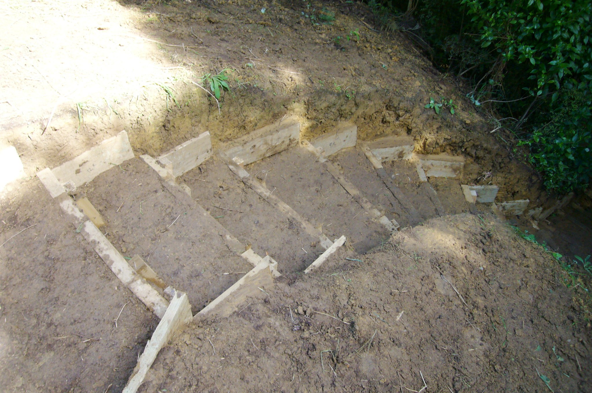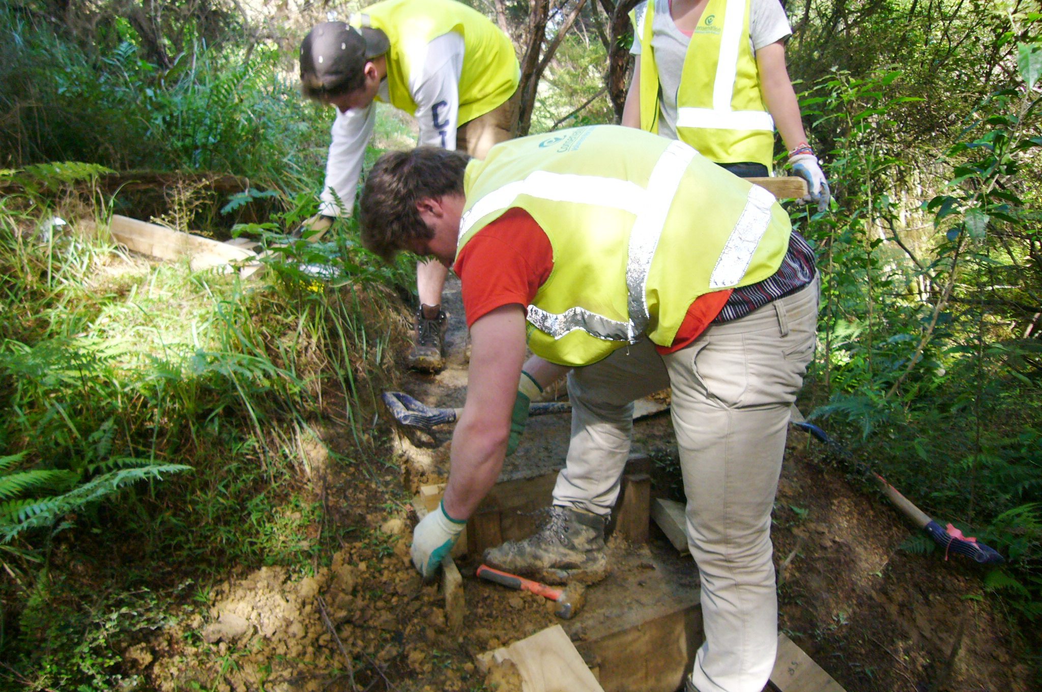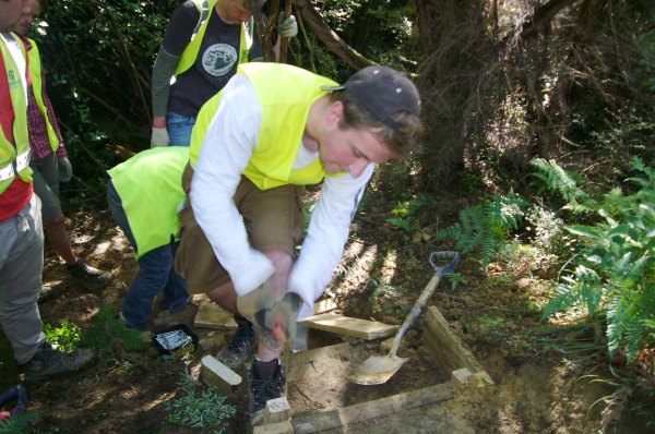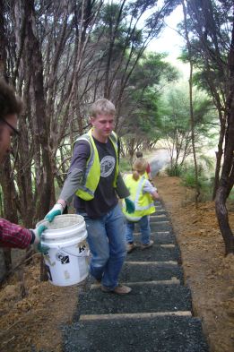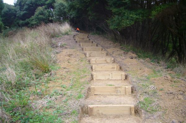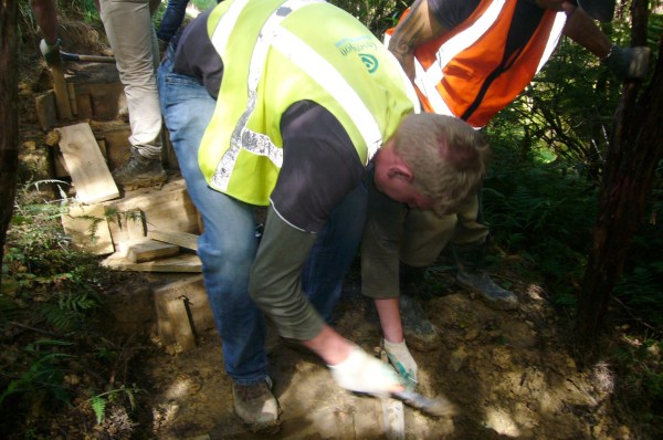 The group spent the rest of the week doing another very important but difficult task. This has been an unusually wet summer and we had heavy rains for most of Thursday. One of the benefits of all the rain is that it has given us an idea about how the walking track will drain during the wet winter months. As a result, on Friday, the team worked on reinforcing some of the steps that may be prone to damage from heavy rains.