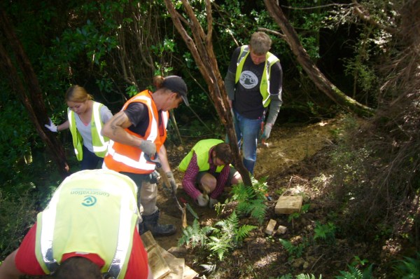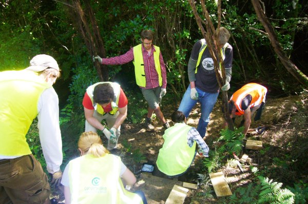 Another great group of Conservation Volunteers spent a week at CUE Haven and finished off the walking track that we started back in October 2011. The team was made up of Maki and Moeko from Japan, Tiark and Ralph from Germany, Luke from the US and Gil from Belgium. The team was led by John Busson of CVNZ.