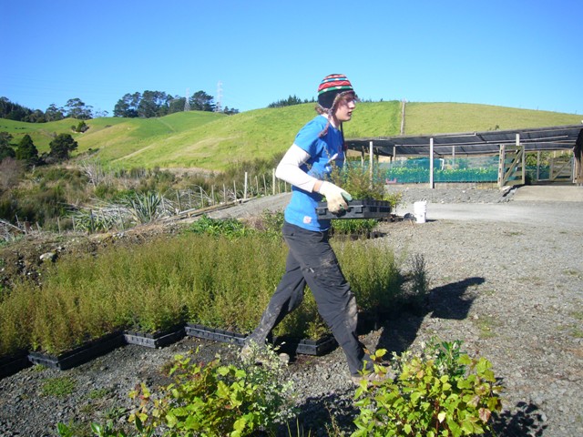 On Wednesday, Sarah, an ecology student at Unitec came out for her practicum work. This was Sarah’s third visit to CUE Haven and this time she spent the day working in the nursery, potting up native tree seedlings. The seedlings were still in their planting trays and needed to be moved to larger pots to give them room to grow.
