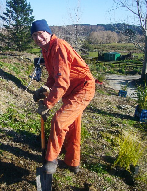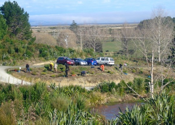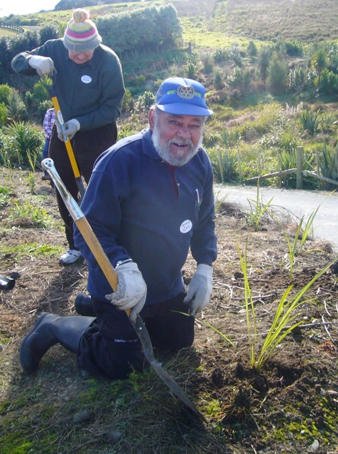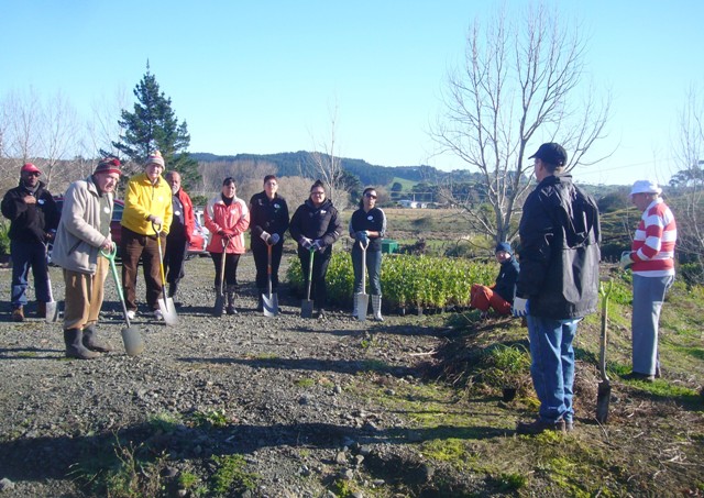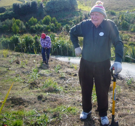 As part of CUE Haven’s vision of Cultivating Understanding and Enlightenment, we have always hoped to bring diverse groups of people together to work with each other and get acquainted. On July 11th we had the opportunity to have a corporate/community partnership as ASB Bank, the Rotary Club of Mt. Roskill/Hillsborough and some of our friends teamed up for a fun and successful planting day. Not only were several organisations represented today, the team members ranged in age from teenagers to octagenarians.