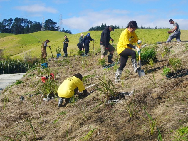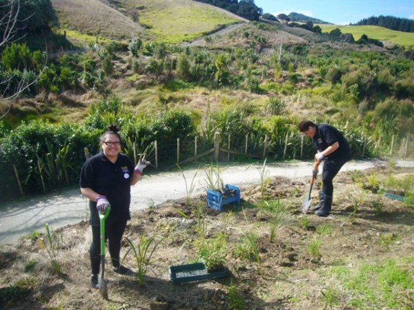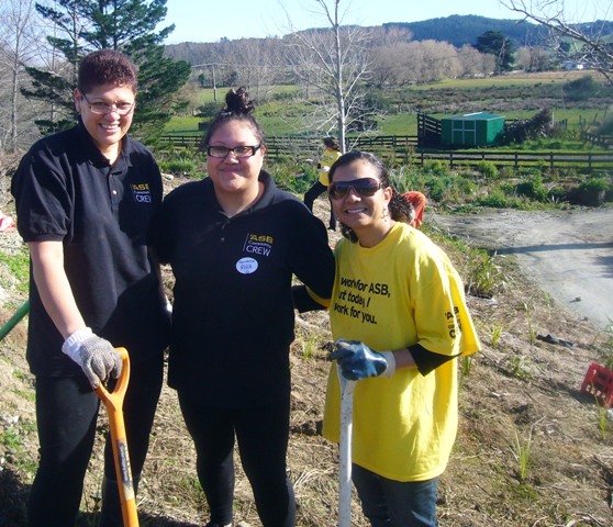 ASB Bank has a strong commitment to community support and service and last year sent a team out for a planting day at CUE Haven. This year we were helped out by Anita, Debbie, Ena, Jacob, Karen, Kesa, Rissa and Vinnie. The group came from St Lukes, Lynmall, Blockhouse Bay, Glen Eden, West City and Te Atatatu branch offices and Jacob represented the West Auckland regional office.