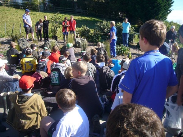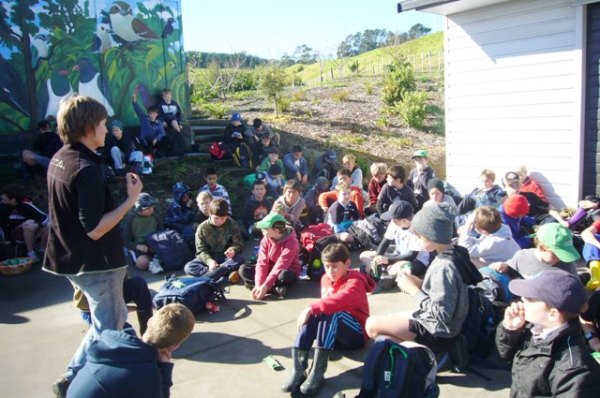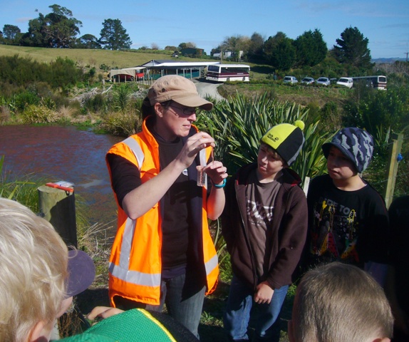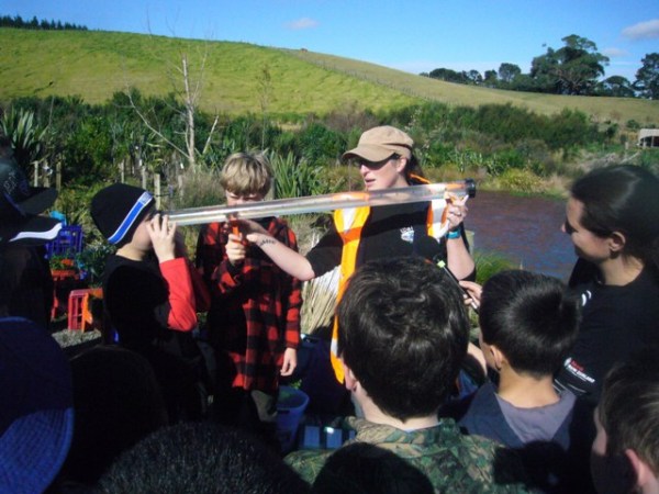 Gail then introduced Rachel Griffiths of the Auckland Council WaiCare programme. Rachel gave a brief talk to the students about water care and wetland protection and explained that when they got into the field she would be demonstrating techniques for testing water quality and showing them some of the creatures living in the streams and ponds.