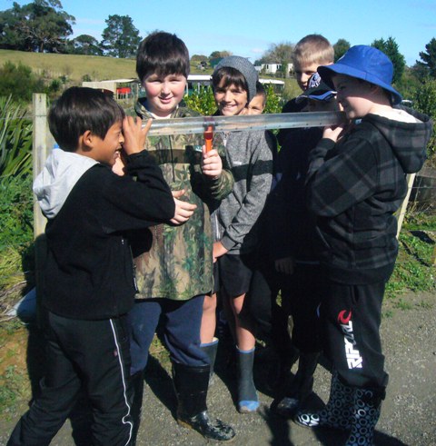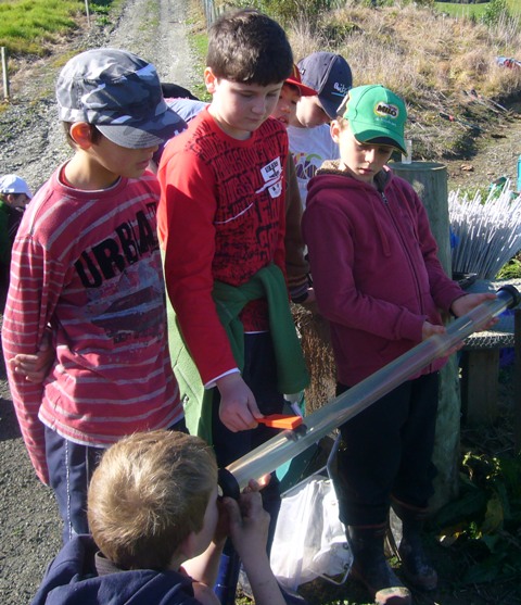 In past years the group size had been restricted to 30 Year 6 students. But this year all the Year 6 science students came along, so we had 61 students, including four Year 7 science monitors. They were accompanied by Denise and two other teachers, St. Kentigern School principal, Geoff Burgess and 11 parents. Also, five Rotarians from the Auckland Sunshine Rotary Club came along and helped out as they have done in each previous year.