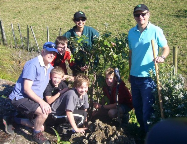 Before the group left, the boys presented us with a Pohutakawa Springfire tree which they planted next to the four trees the school has presented us for each of the years they have come out to plant.