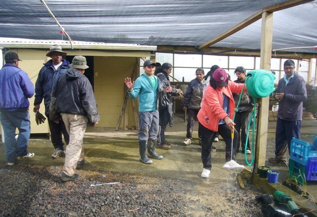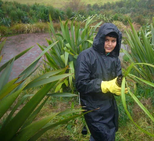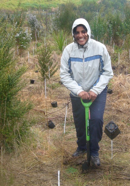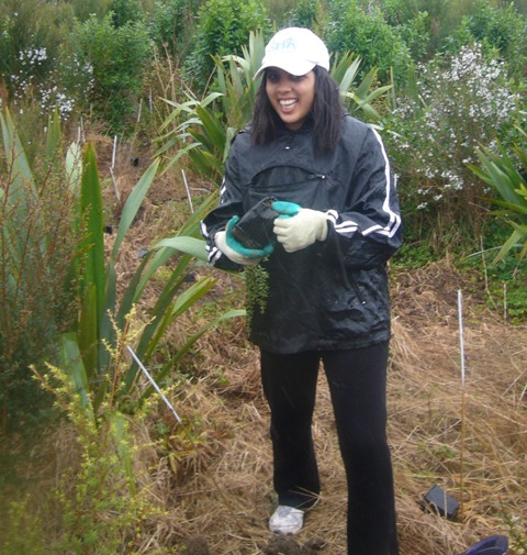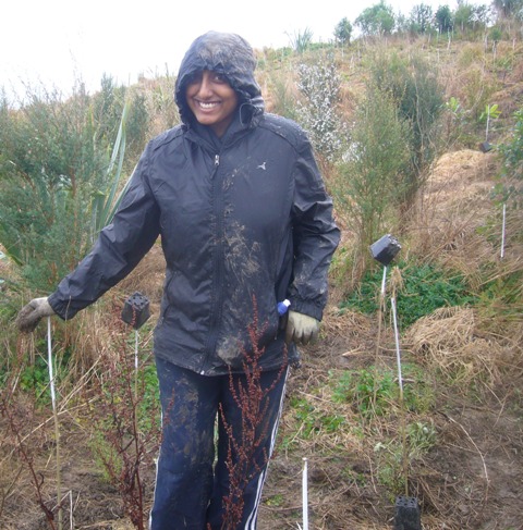 The Satya Sai Group have become good friends of CUE Haven.  They helped us with our nursery mural painting in February 2011, came out for a planting day in July 2011 and helped spread metal on the new walking track in May 2012.  On Sunday, July 29, fourteen members of the Auckland Regional Group ignored the bad weather forecast and came out for a fun and productive planting day.