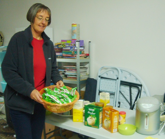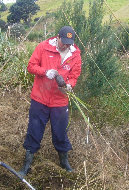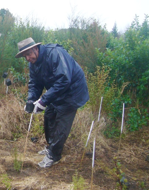 Earlier in the morning Tom and our friend Rene who with his wife Marianne was visiting from the South Island, laid out the young trees where they were to be planted.  Marianne assisted with organising morning tea. Our supporters from Nestle had generously provided coffee and other beverages and Milo snack bars.  Thanks Nestle!!