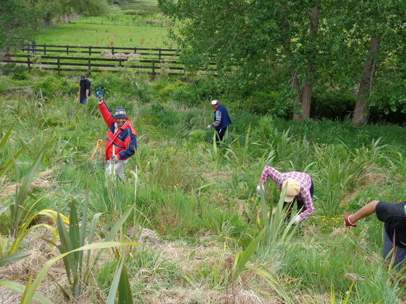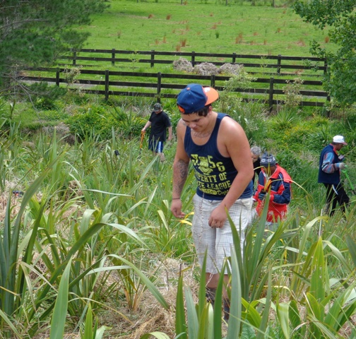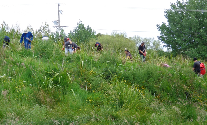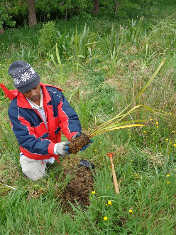 After morning tea and an orientation and safety briefing, the group went to work. We are at the end of the planting season, but it is still possible to plant in the wetlands and part of the group worked on planting up some of the remaining flaxes.