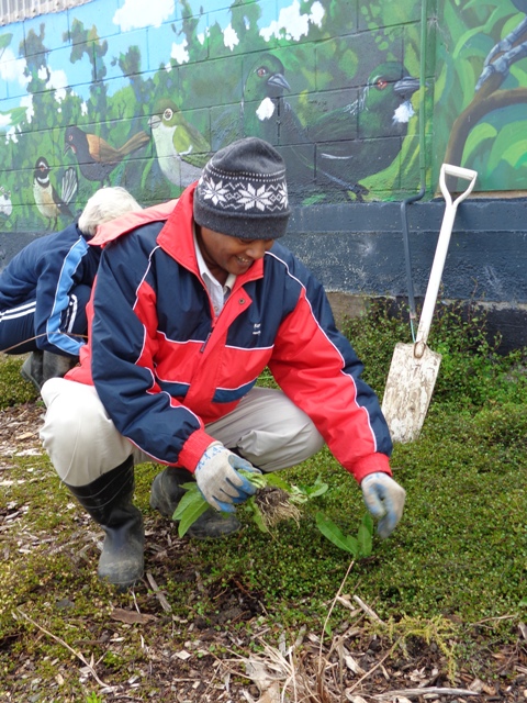 Today a group of students and teachers from the VisionWest Community Trust joined us for a day of planting, weeding and exploring. This is the third time a group from the VisionWest horticulture school has visited CUE Haven as part of their field work experience. The Trust operates a training centre which provides a holistic approach to training by integrating class work, work experience and opportunities for students to discover individual talents.