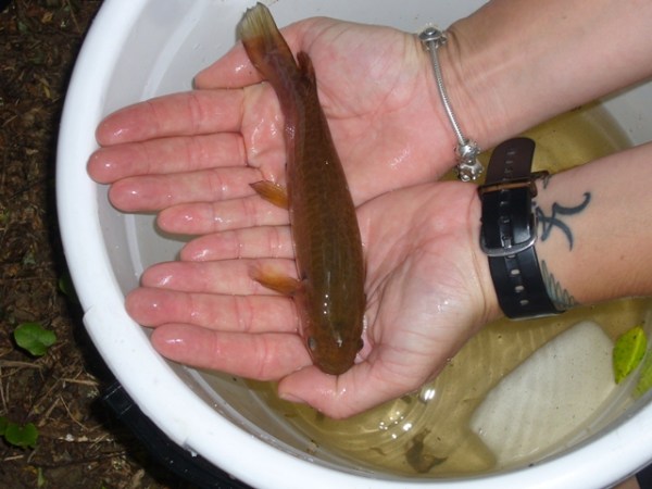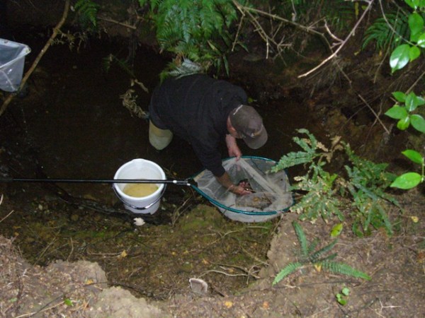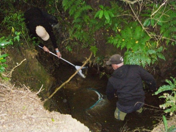 And in no time they found four very healthy Banded Kokopu – a native fish of the Galaxiid (whitebait) family that is found only in New Zealand streams. More information on New Zealand native freshwater fish can be found here: http://terranature.org/kokopuBanded.htm
