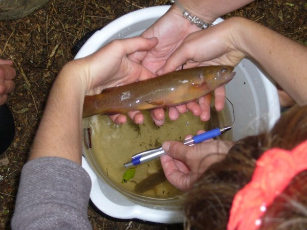 Paul put the fish into a bucket and brought them up for the team to examine and they were happy to see the size and health of the fish.