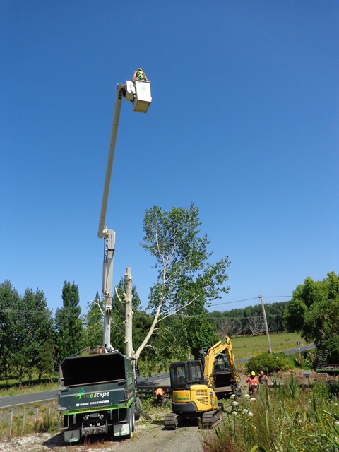 Mark went up in the bucket and cut off the branches and the rest of the team cleared up the debris.