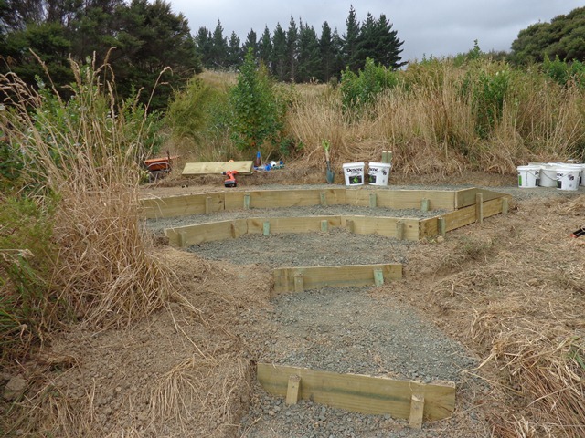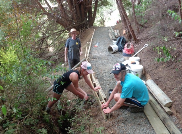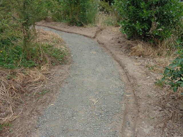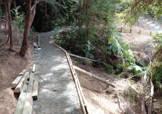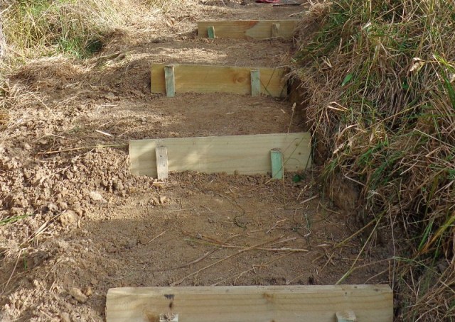 The track traverses very hilly ground and several steps and switch backs are required. The slope also means that we needed to be concerned about drainage and water tables because in rainy weather a lot of water can accumulate and potentially damage the track.