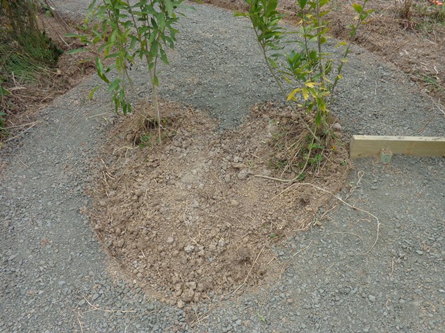 While part of the group worked on the junction, another group developed a creative solution in another part of the track. The route took them around two young trees that they didn’t want to disturb. The initial solution was to create a small island for the trees: